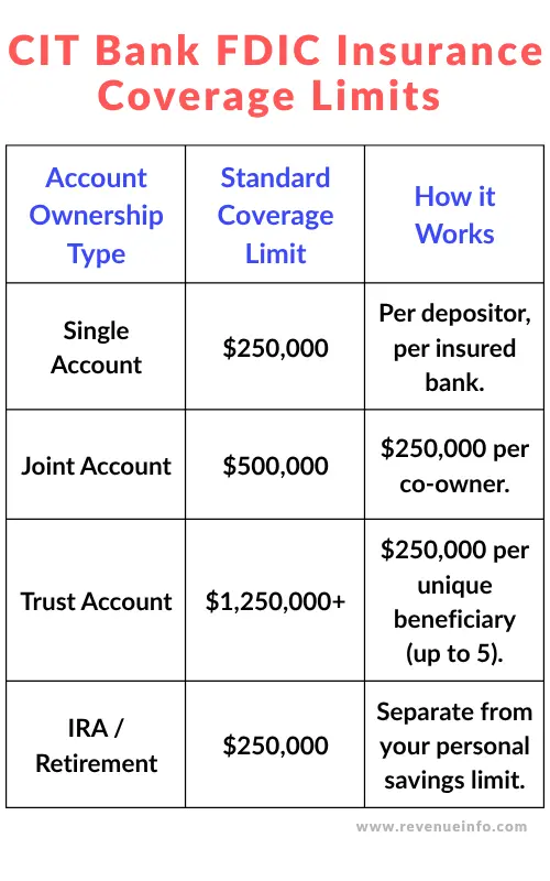 Pro-Tip: If you open a Joint Account with a spouse at CIT Bank, your total FDIC protection automatically increases to $500,000 ($250,000 per person), making it one of the safest places for large U.S. household savings.”
